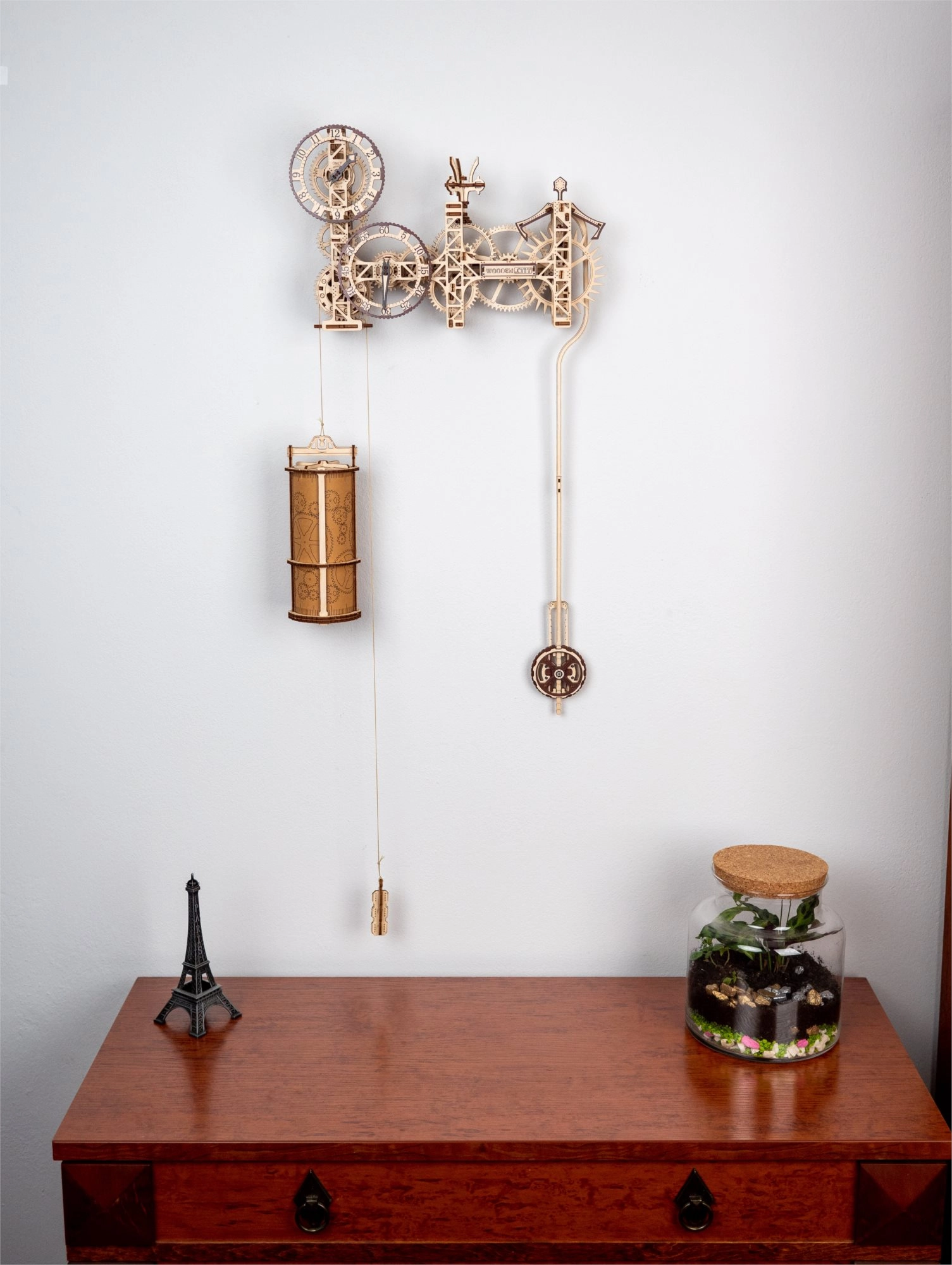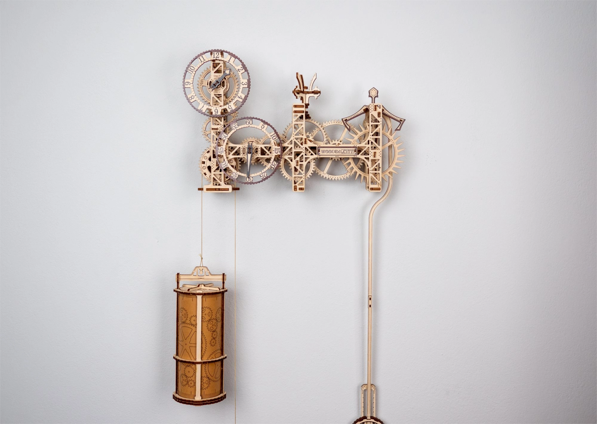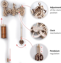 Dėka sumanios konstrukcijos modelis surenkamas be klijų, dalys tiksliai susijungia, o visą procesą lydi iliustruotas vadovas. Projektas ugdo STEM įgūdžius ir leidžia iš arti pažinti pavarų, dantračių ir švytuoklinių laikrodžių mechanikos principus.