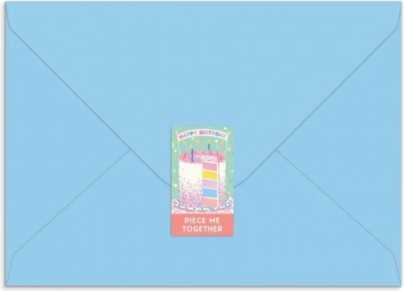 Nustebinkite artimuosius derindami atviruką ir dėlionę. Ši atviruko formato dėlionė vaizduoja gražų tortą; ant nugarėlės galite parašyti asmeninę žinutę, ją išardyti į dalis, įdėti į pridėtą voką ir išsiųsti kaip dovaną.