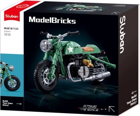 Sluban ModelBricks R75 – realistiškas karinio stiliaus motociklo konstruktorius, kuris siūlo puikią konstravimo patirtį ir įspūdingą ekspozicinį modelį. Dėka apgalvotos konstrukcijos ir kruopščių detalių modelis išsiskirs tiek lentynoje, tiek kolekcijoje.
