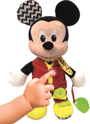 Šis minkštutis žaislas, vaizduojantis pamėgtą personažą MICKEY, sukurtas taip, kad motyvuotų vaikus natūraliai mokytis per žaidimą. Įvairios tekstūros ir medžiagos žadina lytėjimą, o paprasti veiksmai, kaip užtrauktuko užsegimas ar sagos užsegimas, lavina akies–rankos koordinaciją ir kantrybę.