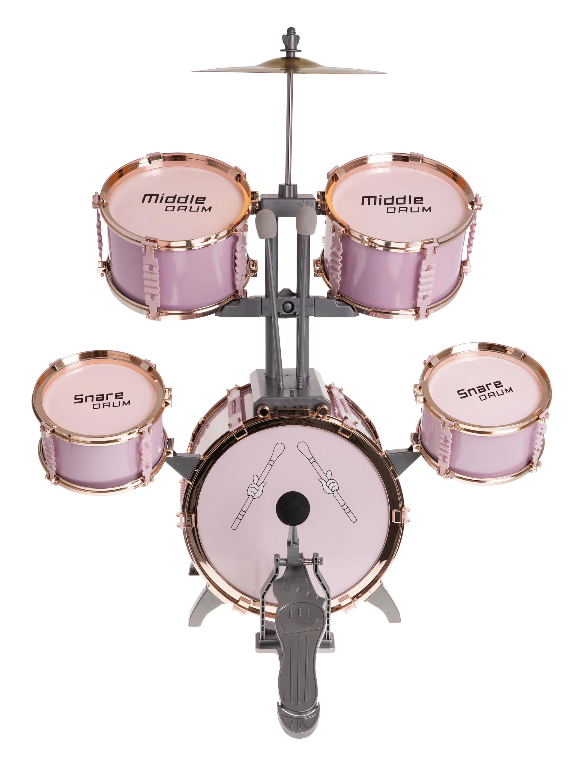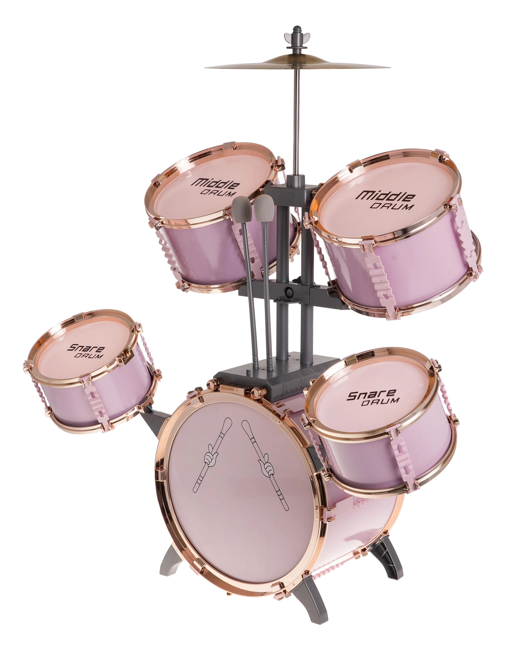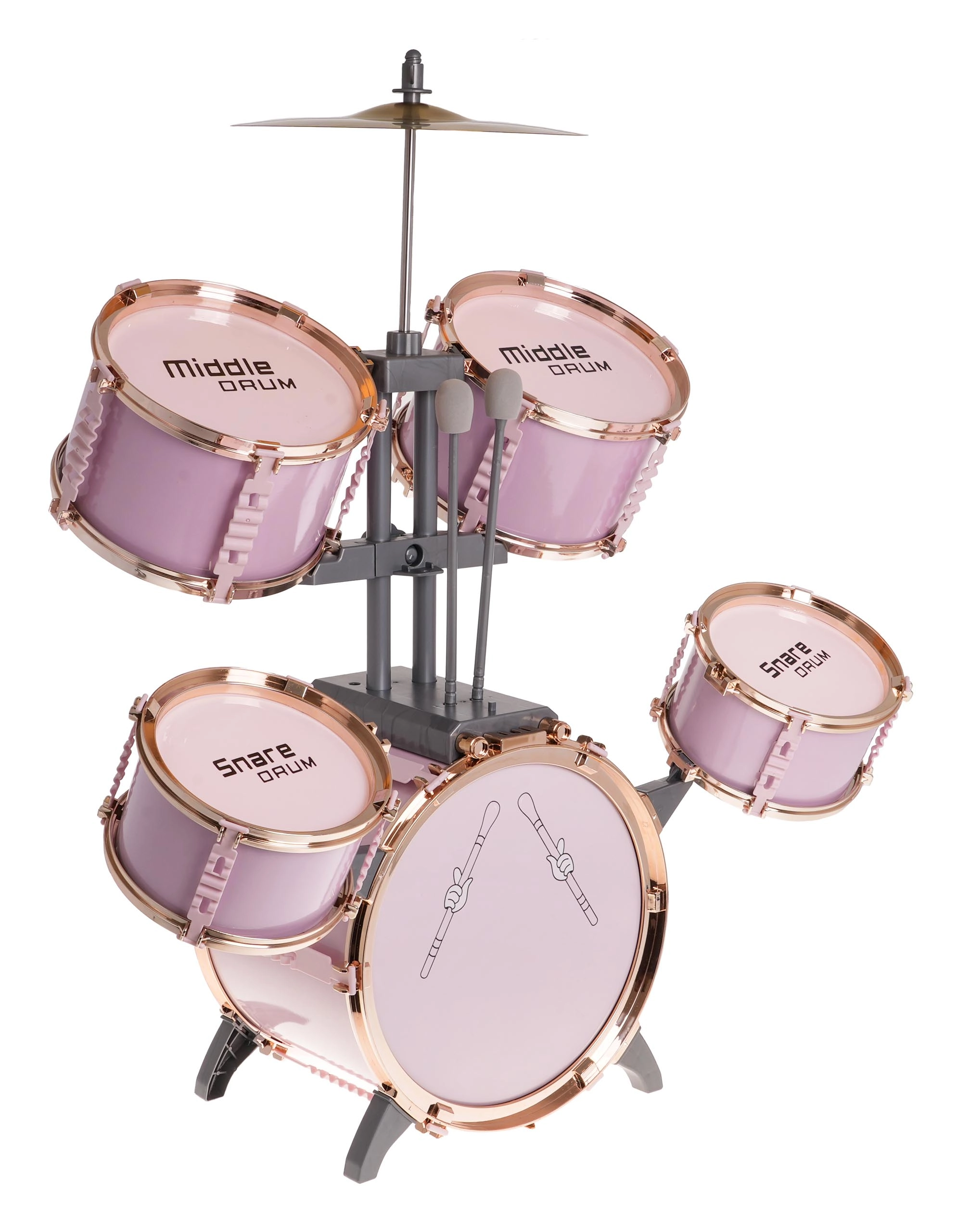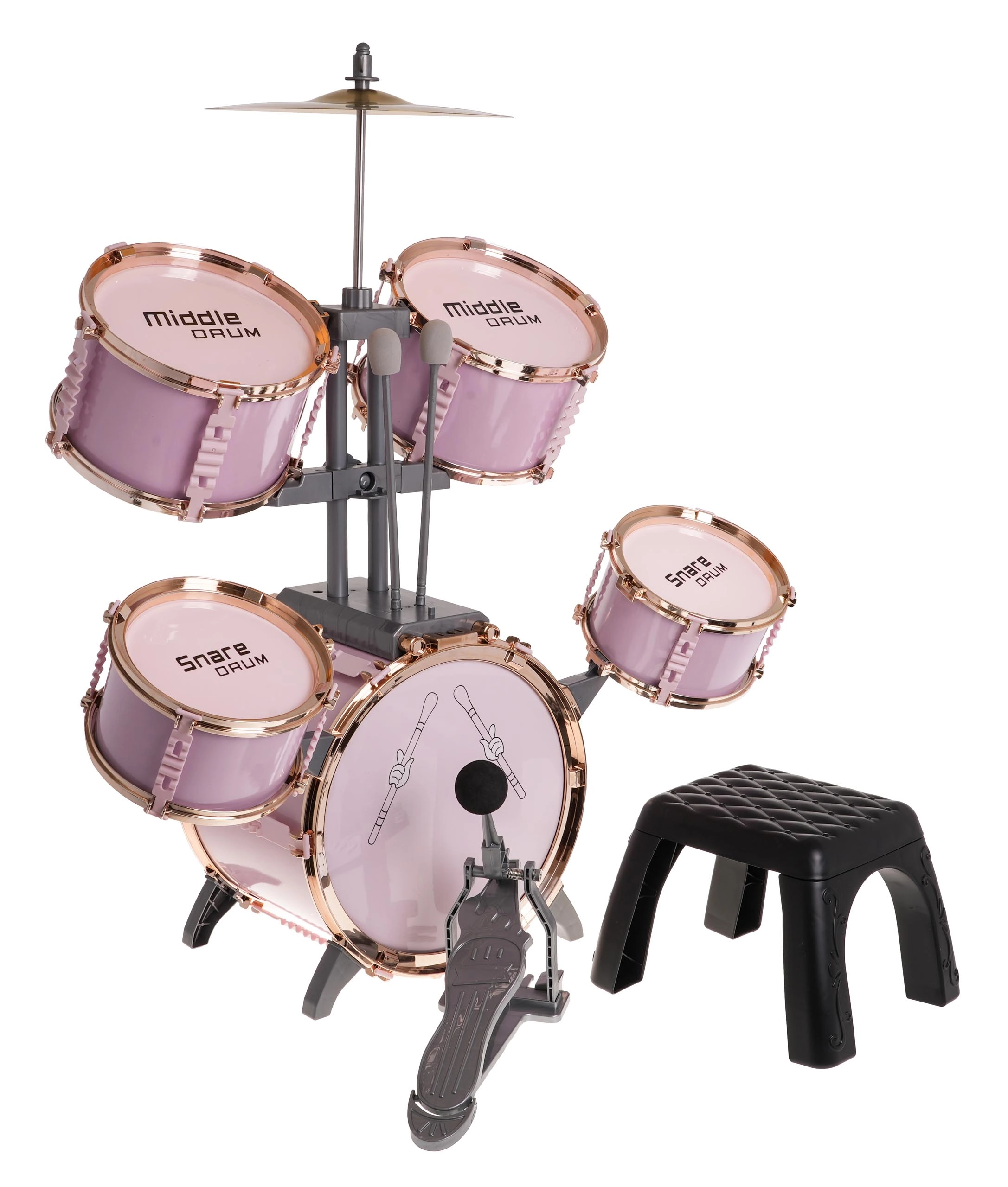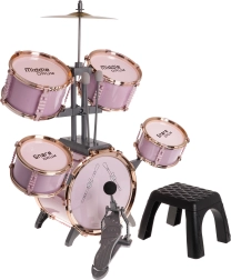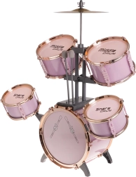 Šis stilingas rožinis būgnų rinkinys yra lengvas, stabilus ir sukurtas specialiai mažiesiems būgnininkams. Dėl pažymėtų būgnų ir aiškaus išdėstymo vaikai lengvai perpras ritmo ir technikos pagrindus. Metalinė lėkštė ir pedalas prie didžiojo būgno sustiprina realistišką grojimo įspūdį.