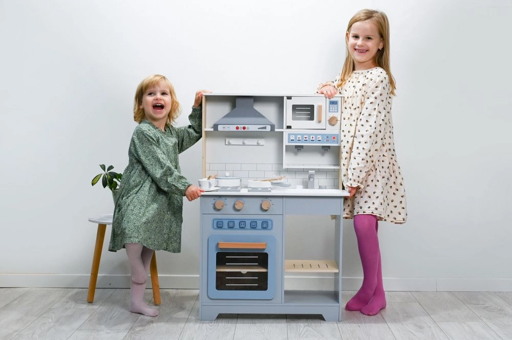 Apgalvoti matmenys 60 × 30 × 89,5 cm ir 50 cm aukščio stalviršis užtikrina, kad virtuvėlė yra ergonomiška ir patogi net mažesniems vaikams. Kokybiškos medžiagos ir tvirtas apdirbimas garantuoja ilgą tarnavimo laiką ir saugų naudojimą pagal CE reikalavimus.