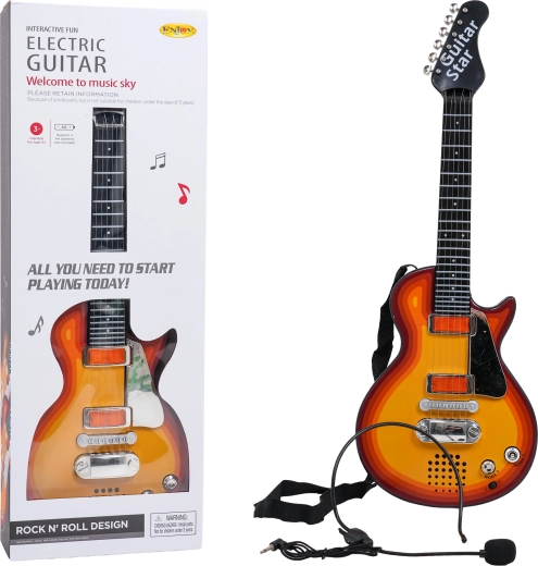 Ši vaikiška elektrinė gitara – puikus pasirinkimas mažiesiems rokeriams ir rokerėms. Ji leidžia tiek groti paruoštą roko foną, tiek ir skambinti pačiam – palietus metalines stygas gitara skleidžia garsą. Pridėtas ausinių ir mikrofono rinkinys jungiamas tiesiai į gitarą, todėl vaikas gali vienu metu dainuoti ir groti.