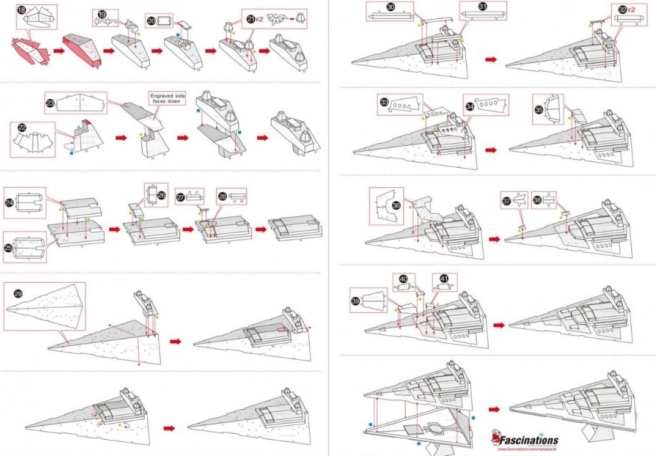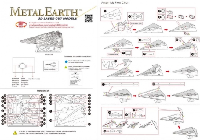 Metal Earth modelių rinkinys pristato preciziškai apdirbtą STAR WARS Imperial Star Destroyer miniatiūrą iš nerūdijančio plieno lakštų. Dėl lazerinio graviravimo išryškėja net smulkiausios paviršiaus detalės, o rezultatas – patvari, įspūdinga replika, tinkama eksponuoti namuose, biure ar mokykloje.