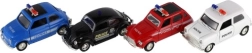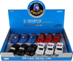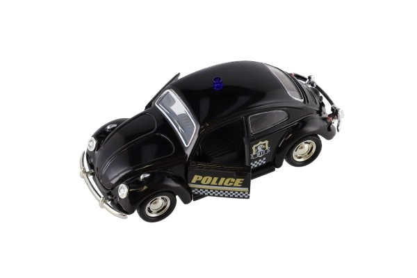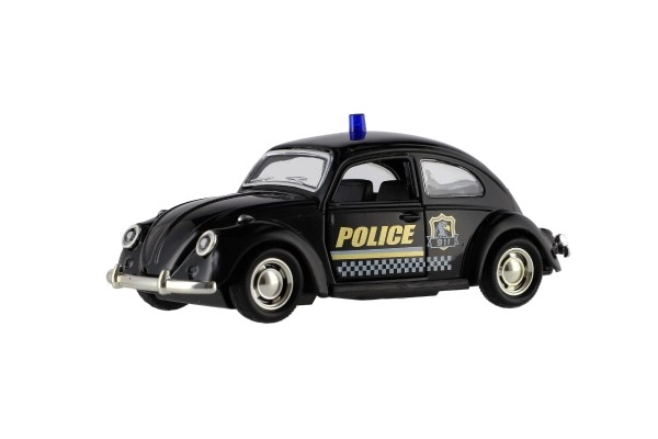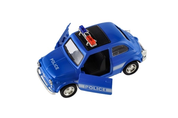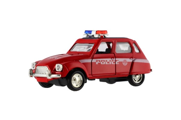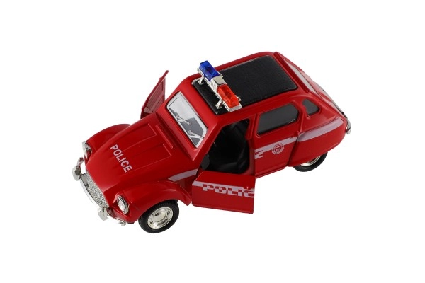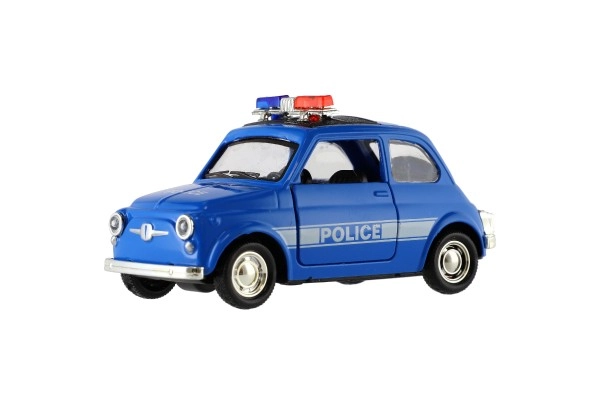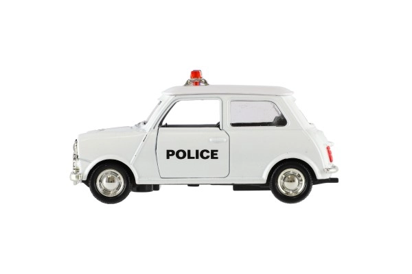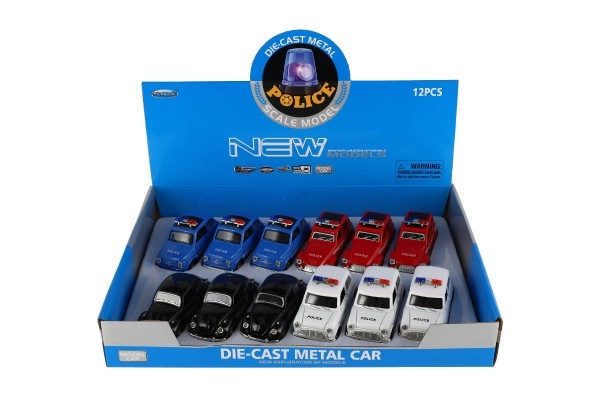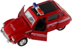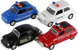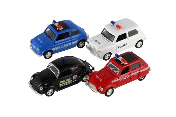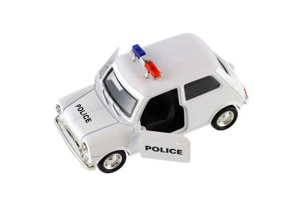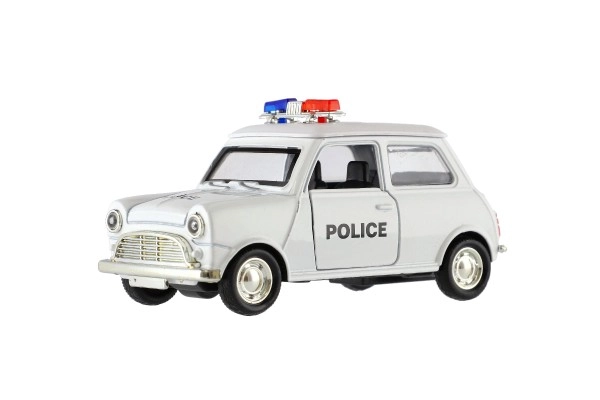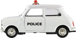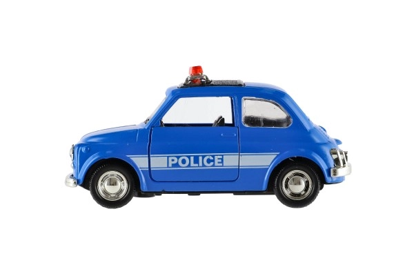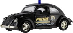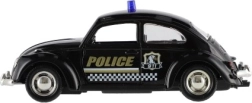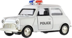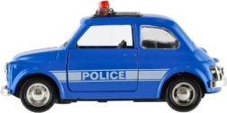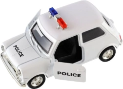 Stilingas retro policijos automobilis, 11 cm ilgio, derina metalinę konstrukciją ir atgalinio važiavimo mechanizmą greitam judėjimui. Turi atidaromas duris ir šviesos efektus su baterijomis. Galimi 4 tipai, idealiai tinka vaikams nuo 3 metų ir mažiems kolekcionieriams.