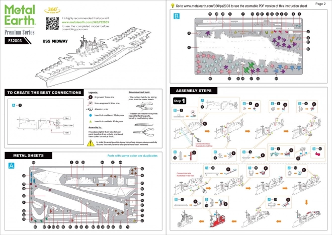 Atraskite žavų metalinių 3D modelių pasaulį su premium rinkiniu METAL EARTH: lėktuvnešis USS MIDWAY. Iš plonų plieninių lakštų, naudojant tikslų lenkimą ir užfiksuojamas spyneles, sukursite realistišką legendinio laivo repliką su smulkiomis faktūromis ir denio žymėjimais. Dėl lazerinio graviravimo išryškėja net menkiausios detalės.