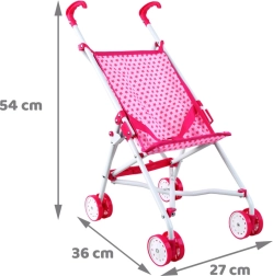 Lengvas ir praktiškas sulankstomas vežimėlis lėlėms ar pliušiniams žaislams. Ideali priemonė vaikų žaidimams – leidžia saugiai ir patogiai vežti mėgstamus žaislus pasivaikščiojimų metu.