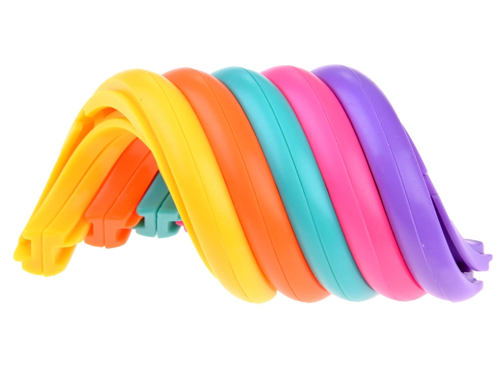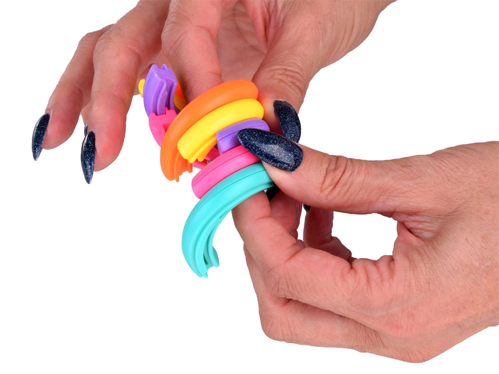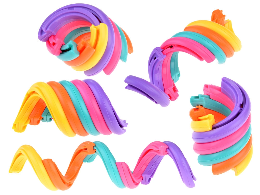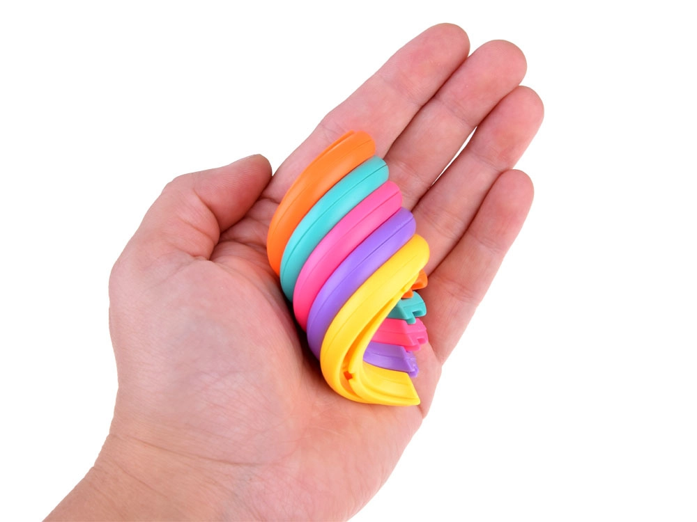 Ši magiška vaivorykštinė spiralė iš tvirtų plastikinių žiedų sklandžiai rieda be pabaigos. Paprasti, pasikartojantys judesiai padeda nusiraminti, mažinti stresą ir gerinti koncentraciją mokantis, dirbant ar laukiant eilėje. Dėl kompaktiško dydžio telpa kišenėje ar kuprinėje ir visada po ranka.