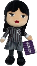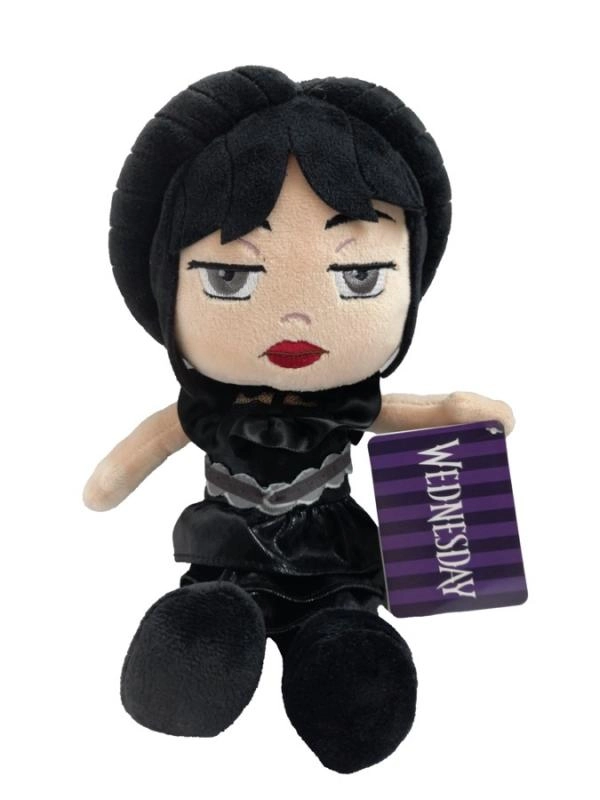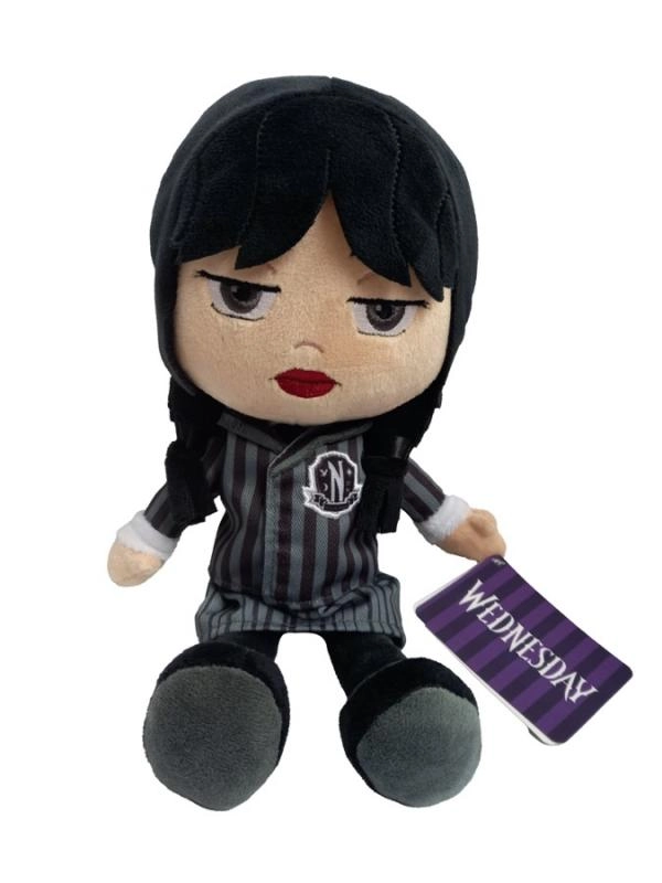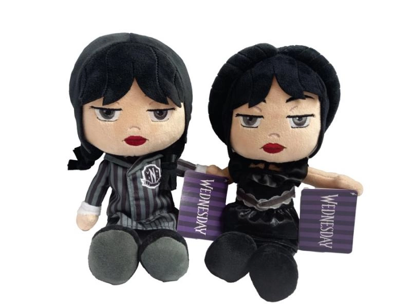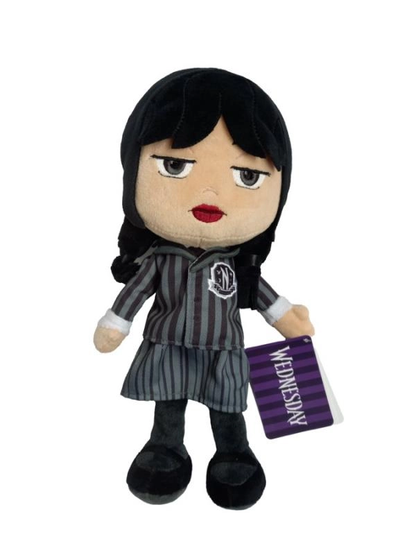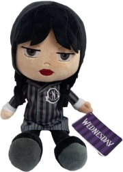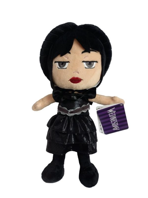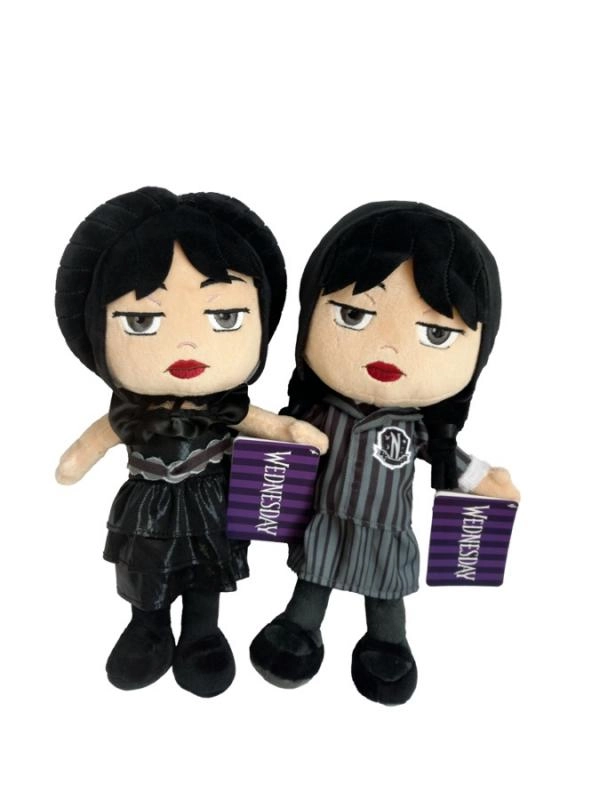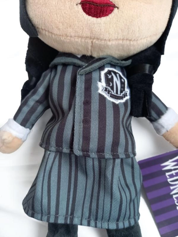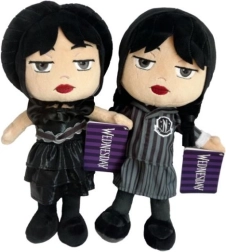 Atraskite mėgstamo serialo herojės žavesį su mūsų stilinga pliušine lėle Wednesday Addams. Ši 32 cm lėlė ištikimai atkurta dviem ikoniniais apdarais: pilka Nevermore mokykline uniforma ir ekstravagantiška juoda suknele, kurią ji vilkėjo per Nevermore Rave'N šokius.