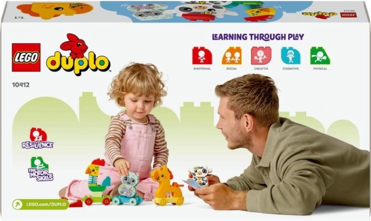 Atraskite džiaugsmingą statybą patiems mažiausiems! LEGO DUPLO Mano pirmasis traukinukas su gyvūnais (18+ mėn.) siūlo smagų spalvų mokymąsi, smulkiosios motorikos lavinimą ir kūrybišką konstravimą. Vaikai pastatys keturis mielus gyvūnėlius, pasodins juos į spalvotus vagonėlius su ratukais ir leisis į vaizduotės kupiną kelionę. Yra lankstus gaidžio kaklas, sujungiamieji vagonėliai ir kortelės su užuominomis lengvam dėliojimui.
