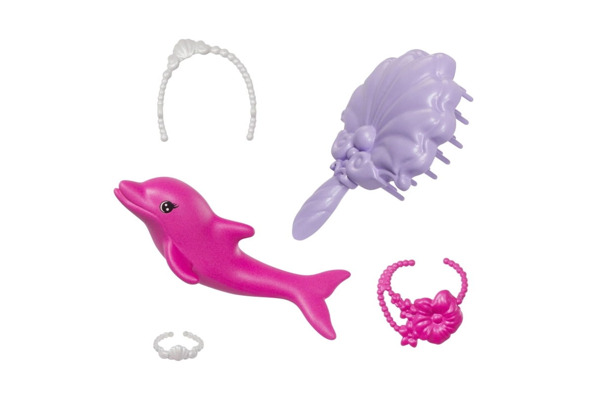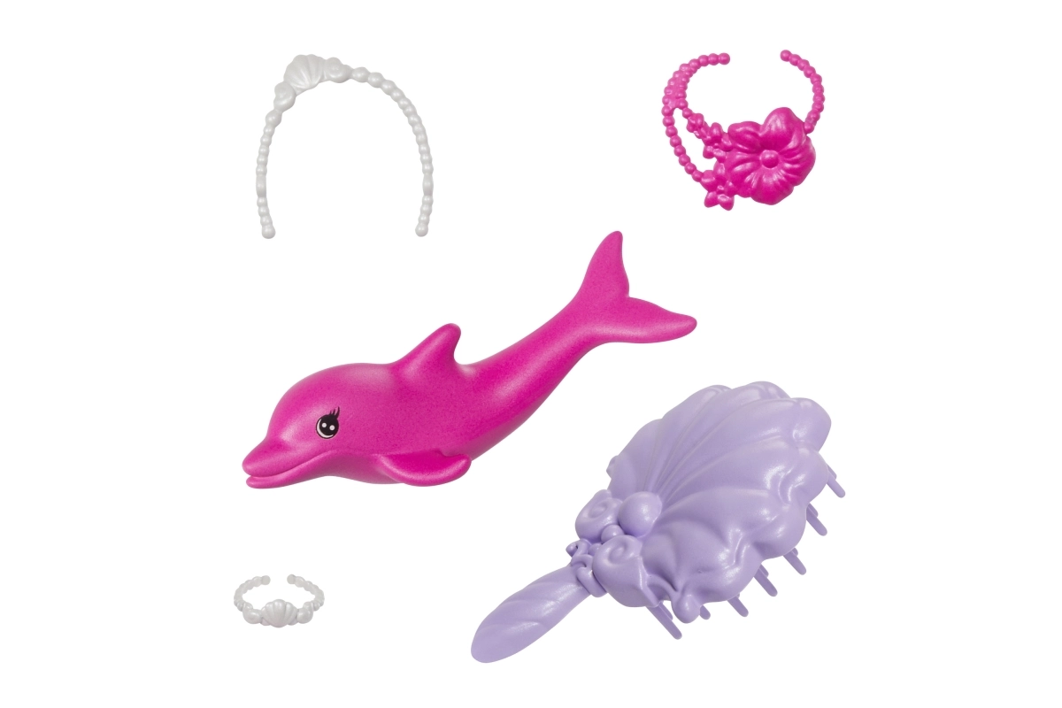 Barbė turi ypač ilgus plaukus (apie 19 cm), tinkamus šukavimui ir formavimui. Pakuotėje rasite šukas ir vandenyno tematikos aksesuarus (lankelius, vėrinius) kūrybiškam žaidimui. Mielas delfinas skatina vaizduotę ir praplečia žaidimų scenarijus.