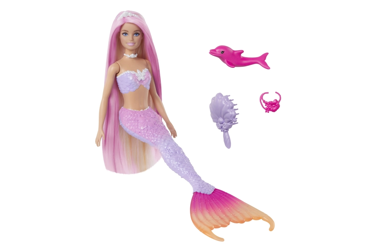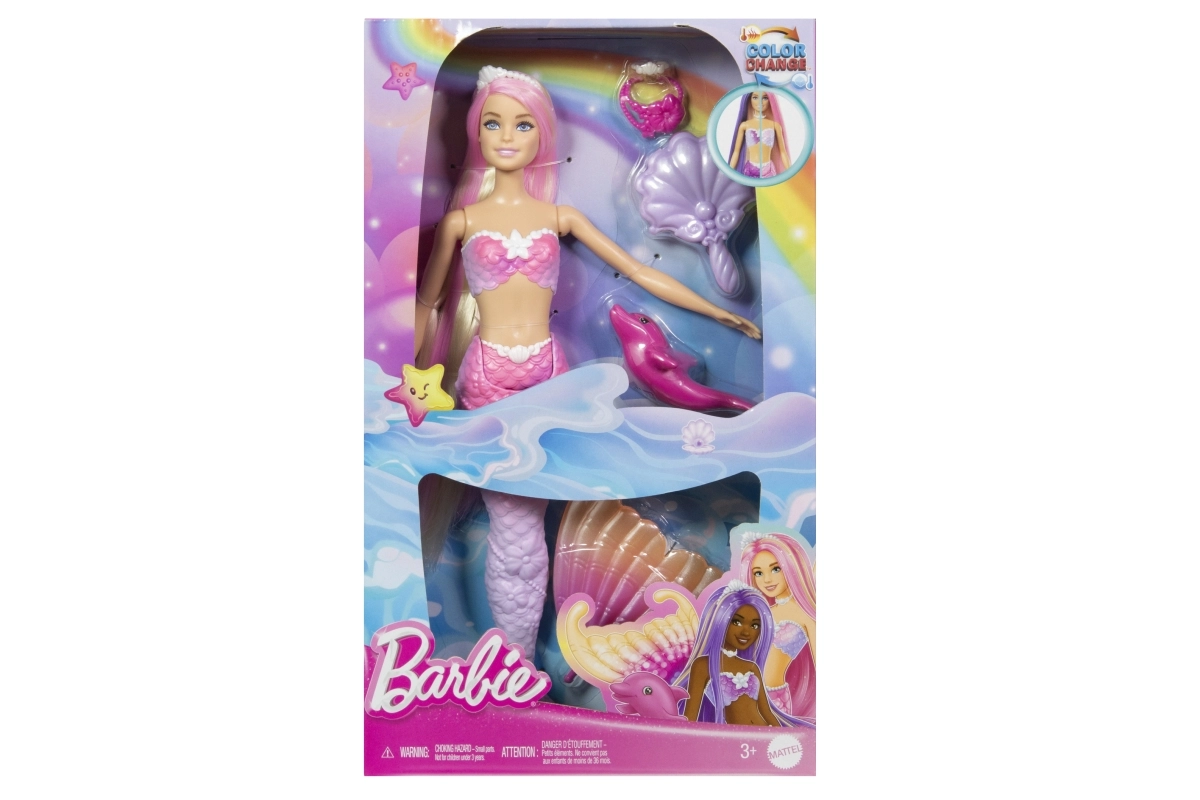 Atrakinkite magišką pasaulį su lėle Barbė Malibu – undine, kuri keičia spalvas. Jos ilgi rožiniai plaukai, liemenėlis ir uodega su ombrė efektu keičia atspalvį iš rožinės į violetinę šaltame vandenyje ir vėl grįžta šiltame vandenyje. Rinkinyje yra stiliaus aksesuarai, šukos ir mielas delfiniukas – puiki dovana vaikams nuo 3 metų.
