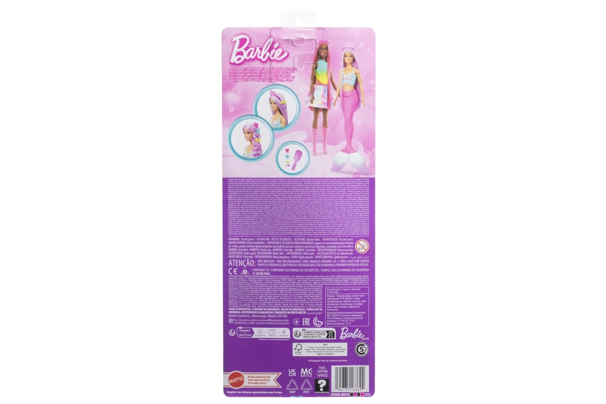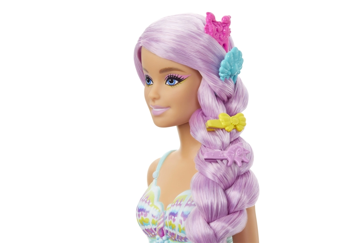 Lėlė Barbė undinėlė su ilgais plaukais lavina vaikų vaizduotę ir skatina kūrybišką žaidimą. Dėka ilgų levandų spalvos plaukų, spalvotų segtukų ir šepečio, vaikai gali kurti savo šukuosenas ir istorijas iš povandeninio pasaulio.