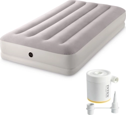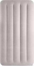 Praktiškas pripučiamas čiužinys INTEX, dydis 191 × 99 × 30 cm, patogiam vieno asmens miegui namuose ir kelionėse. Dėl Dura-Beam Fiber technologijos jis stabilus ir gerai prilaiko kūną. Malonus veliūrinis (flock) paviršius yra švelnus liesti ir neslysta. Komplekte yra kompaktiška USB elektrinė pompa greitam pripūtimui ir išleidimui bei transportavimo krepšys patogiam nešiojimui.