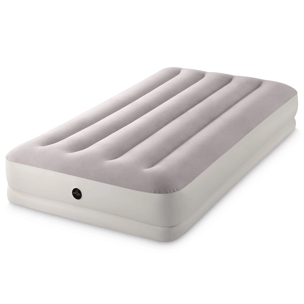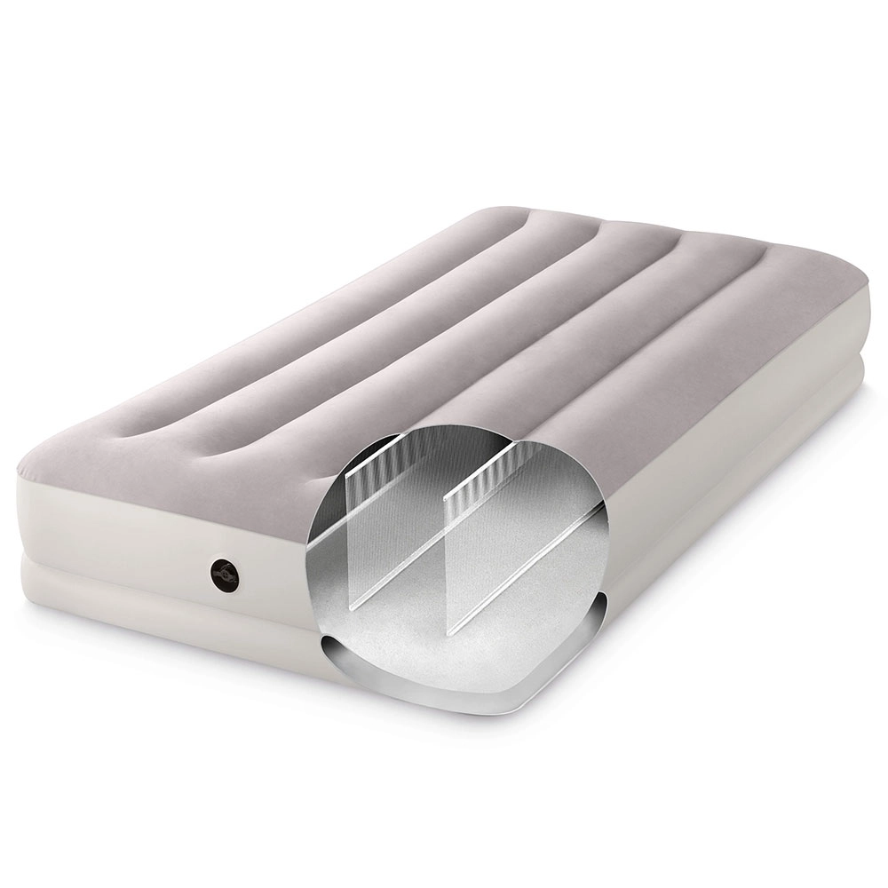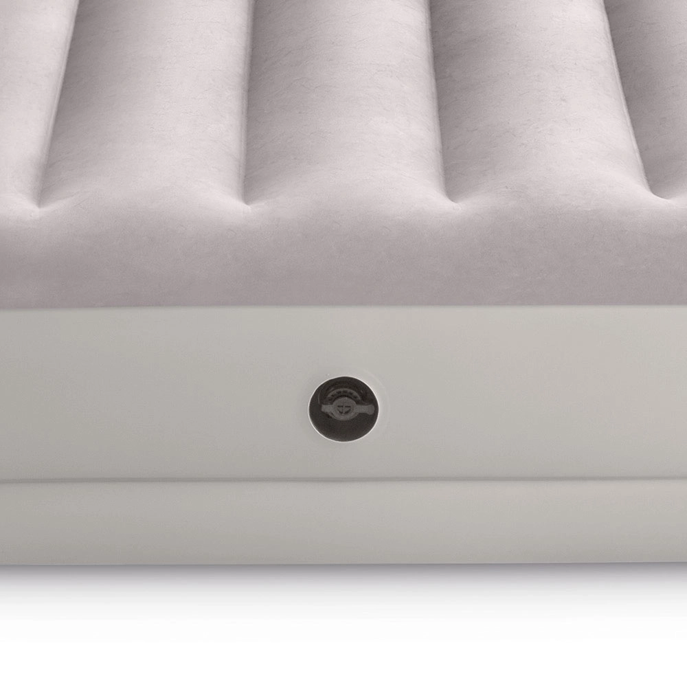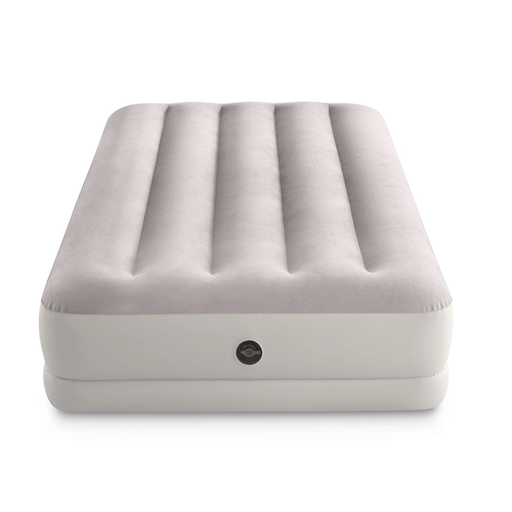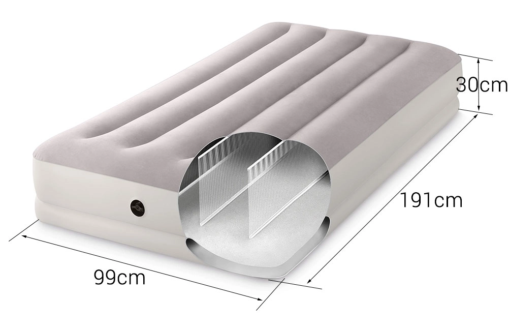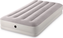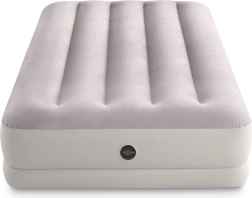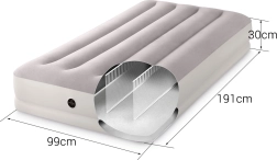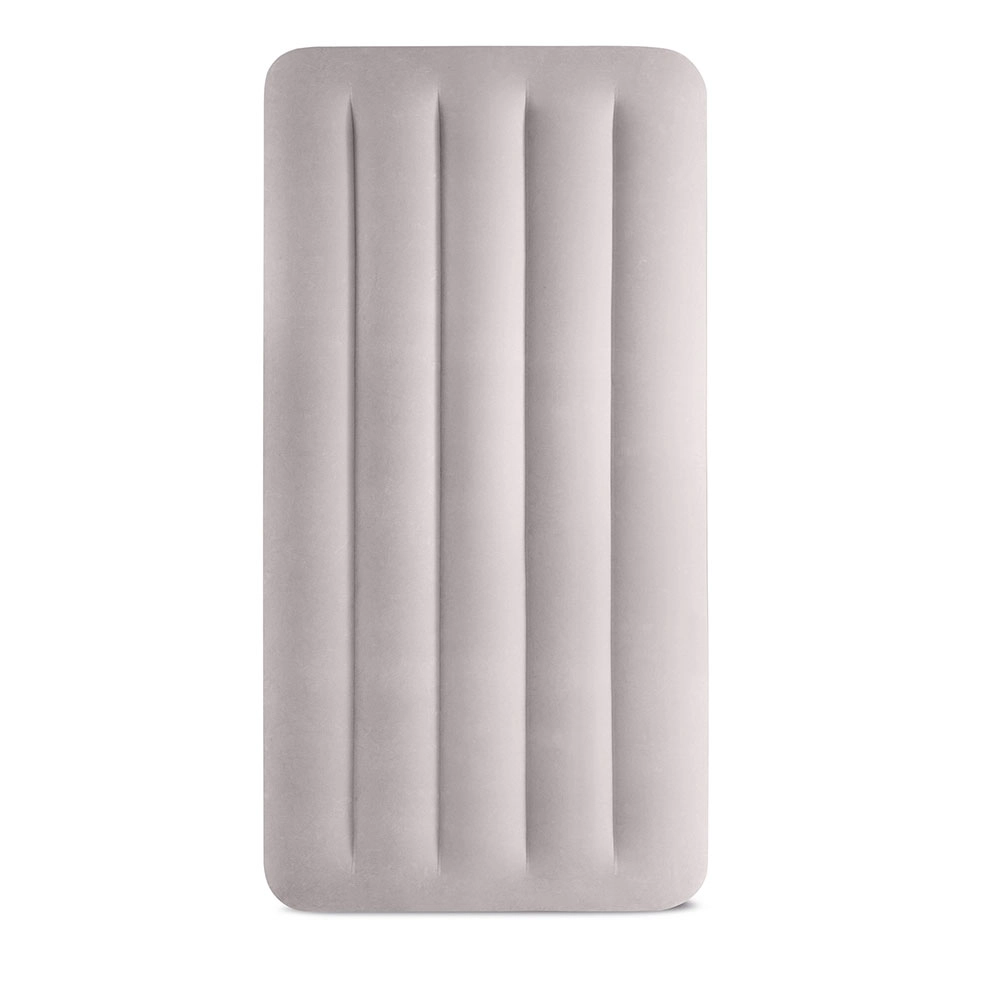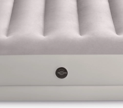 Pripučiamas čiužinys INTEX derina patvarų PVC su minkštu flokiniu paviršiumi, kuris yra malonus liesti ir didina miego komfortą. Paaukštinta konstrukcija su išilginėmis kameromis ir vidiniais sutvirtinimais užtikrina stabilumą be supimosi efekto ir patikimą stuburo atramą.