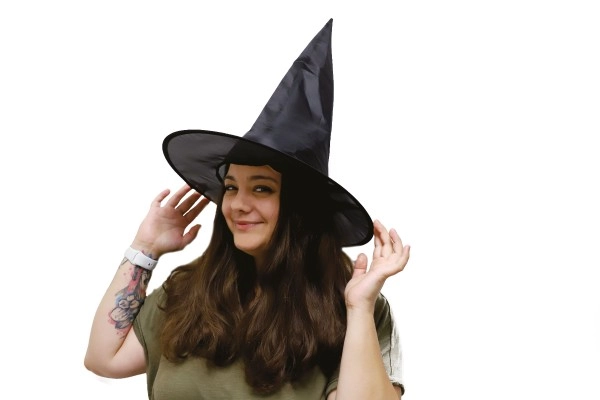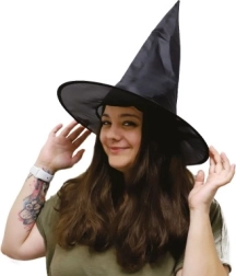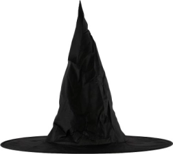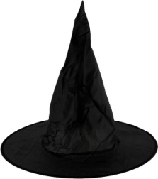 Išraiškingas smailus viršus ir platus snapelis suteiks jūsų kostiumui autentiško charakterio. Juoda tekstilinė skrybėlė puikiai derės tiek su raganos, tiek su burtininko kostiumu.