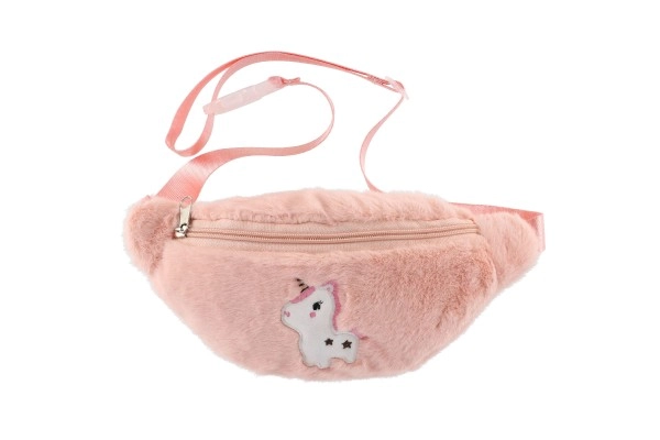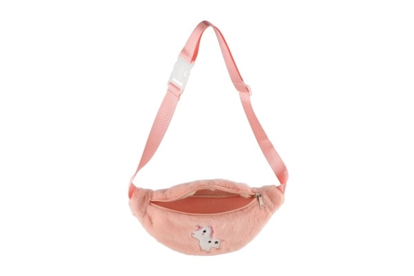 Mielas vaikiškas pliušinis rankinis krepšelis su vienaragiu – idealus visoms smulkmenoms, kurias norite turėti po ranka. Turi reguliuojamą juosmens diržą ir pagrindinį skyrių su užtrauktuku.