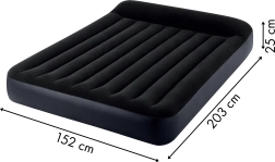 Dvisluoksnis pripučiamas INTEX čiužinys, kurio matmenys 203 × 152 × 25 cm, užtikrina patogų miegą 2 asmenims namuose ir kelionėse. Jis pagamintas iš patvaraus PVC, paviršius dengtas malonia, vandeniui atsparia veliūrine medžiaga, o dėl integruoto elektrinio siurblio čiužinį pripūsite maždaug per 250 sekundžių. Stabili konstrukcija su Dura-Beam Fiber technologija suteikia puikią nugaros atramą, o integruota pagalvė prideda papildomo komforto. Patogus vožtuvas leidžia greitai išleisti orą ir lengvai laikyti.