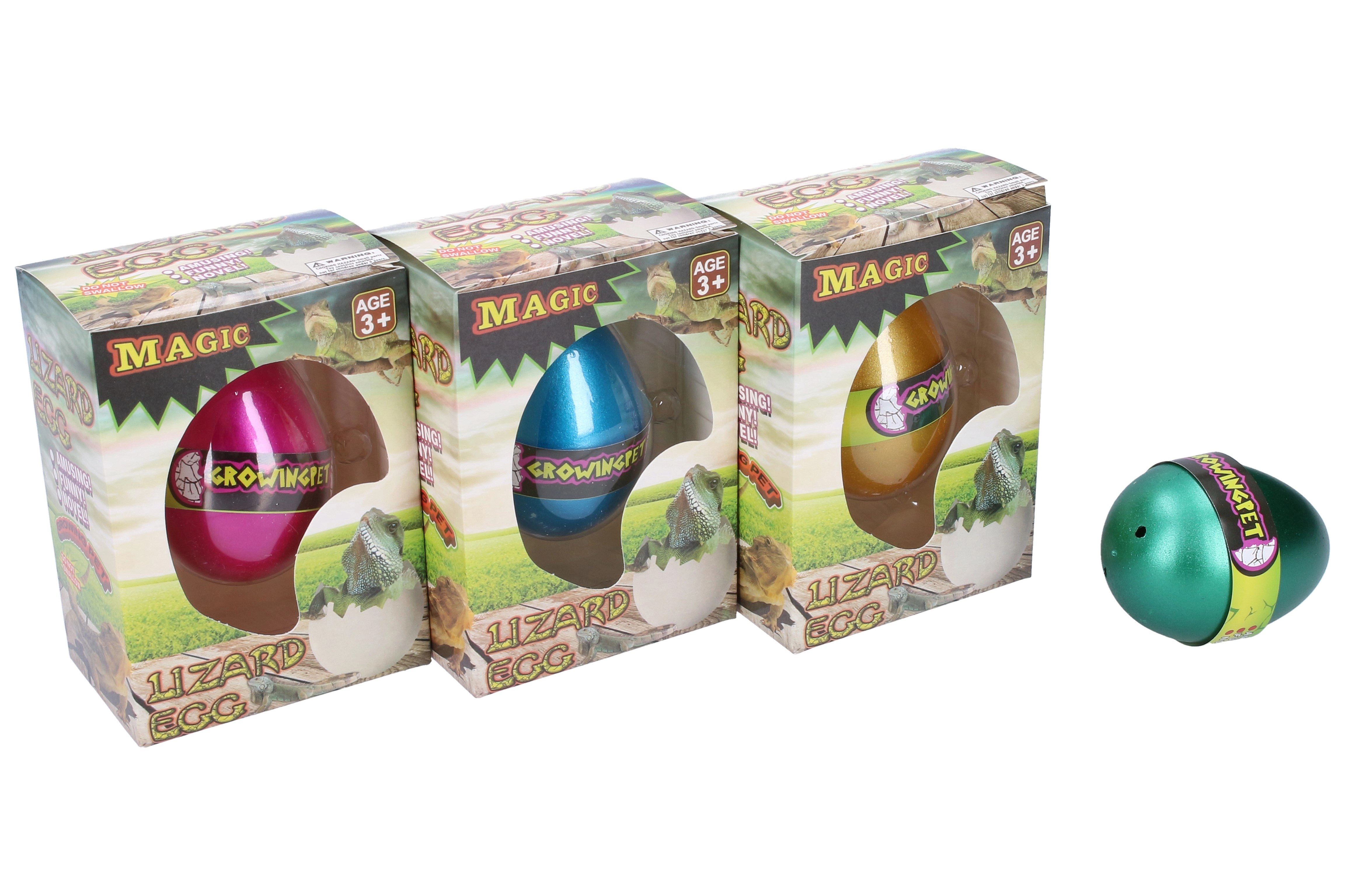Šiuose nuostabiuose kiaušiniuose slypi paslaptis – magiškai didėjanti driežė! Tiesiog įdėkite kiaušinį į vandenį ir stebėkite, kaip jis pamažu išsirita ir padidėja iki neįtikėtinų dydžių. Galimi keturi spalviniai variantai: mėlyna, auksinė, žalia ir violetinė, kurie suteikia įvairovės ir jaudulio kiekvieną kartą atidarius.