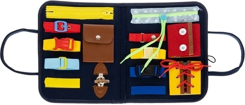 Vaikiška manipuliacinė lenta – tai sensorinis įrankis, padedantis lavinti akių-rankų koordinaciją, loginį mąstymą ir savarankiškumą. Ji siūlo 14 manipuliacinių elementų, tokių kaip užtrauktukai, mygtukai, sagtelės ir virvelės, skirtos praktiniams įgūdžiams treniruoti.