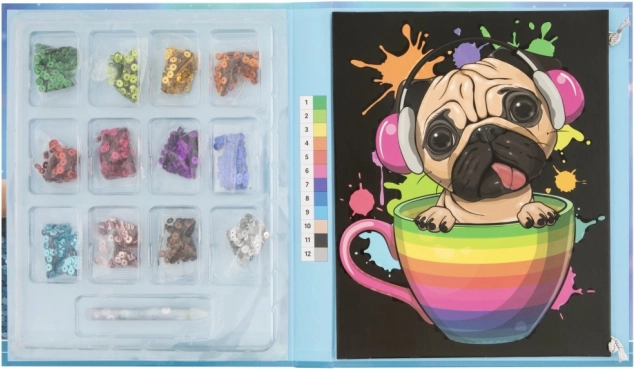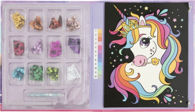 Atraskite paprastą ir linksmą būdą įtraukti vaikus į kūrybą. Su šiuo piešimo pagal skaičius rinkiniu jie sukurs gražų paveikslėlį su vienaragio arba šuniuko motyvu. Tereikia derinti spalvas su skaičiais ir naudojant dozavimo pieštuką klijuoti spalvotus taškelius į reikiamas vietas.