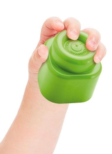 Kaladėlės pagamintos iš minkštos netoksiškos gumos, kuri saugi net patiems mažiausiems. Jas lengva plauti, jos turi lengvą vanilės kvapą.