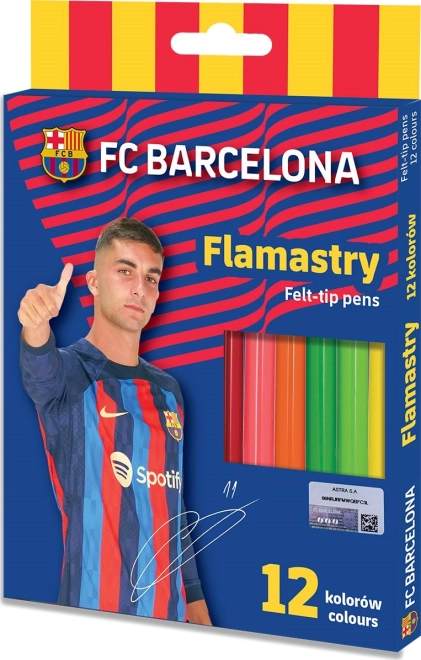 ASTRA FC Barcelona flomasteriai pradžiugins mažus ir didelius futbolo gerbėjus. Dėl apvalaus galiuko lengvai nupiešite smulkias detales ir ryškesnius kontūrus, o ergonomiška forma užtikrina komfortą piešiant ilgiau. Rinkinys su 12 sodrių spalvų įkvepia vaikų vaizduotę ir tinka mokyklos projektams.