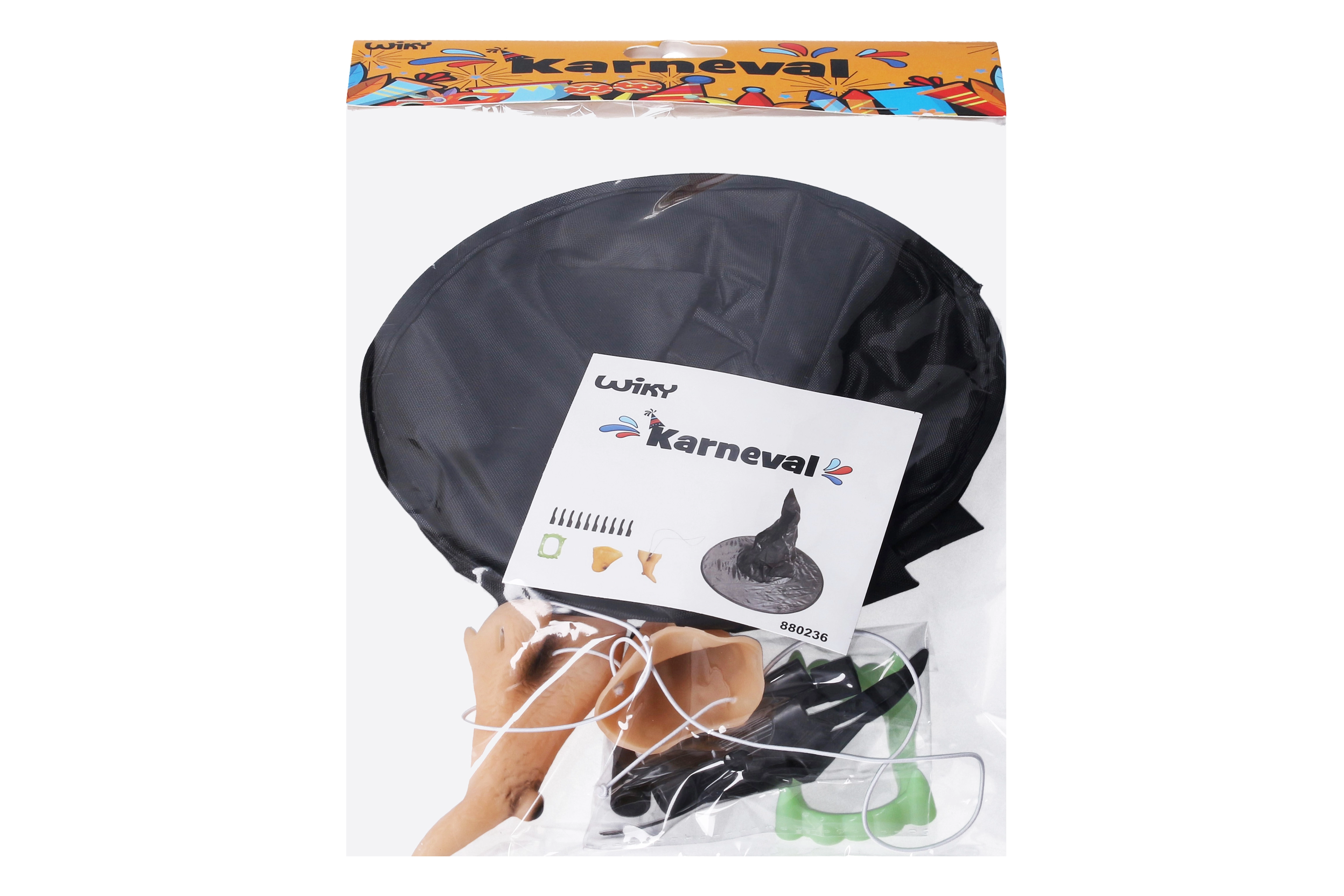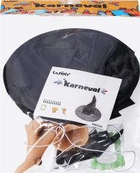 Pilnas raganos rinkinys kiekvienai vakarėlių, karnavalo ir Helovino progai. Sudėtyje yra didelė skrybėlė, barzda ir nosis su gumele, 10 užmaunamų pirštų su nagais ir dantys, todėl per kelias minutes lengvai sukursite autentišką raganos įvaizdį.