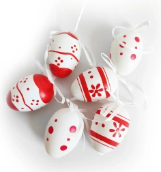 Šie gražūs plastikiniai kiaušiniai suteiks jūsų namams jaukią šventinę atmosferą. Jie kruopščiai nudažyti, kad atkartotų tradicinių dekoratyvinių kiaušinių išvaizdą. Šių kiaušinių privalumai: