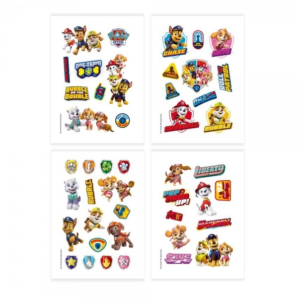 Su šiomis laikinosiomis tatuiruotėmis vaikai mėgausis gausybe pramogų su mėgstamais personažais, tokiais kaip Chase ir Skye. Uždėjimas paprastas: pasirinktas motyvas pridėkite prie odos, sudrėkinkite, trumpai prispauskite ir nuimkite pagrindinį popierių. Tatuiruotės švelnios vaikų odai ir po kurio laiko pačios nusiplauna.