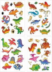 Linksmas laikinų tatuiruočių rinkinys su dinozaurų motyvais pradžiugins visus mažus priešistorės mylėtojus. Taikymas paprastas – tereikia prispausti, lengvai sudrėkinti ir nulup-ti. Puikiai tinka kaip nedidelė dovana ar paskatinimas. Lengvas uždėjimas, mieli dinozaurų motyvai ir saugu vaikams nuo 3 metų.