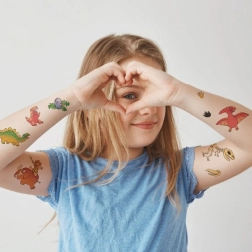 Atraskite laikinų tatuiruočių kolekciją su mėgstamais dinozaurais. Vaikai gali išsirinkti mėgstamą motyvą ir akimirksniu tapti dino-žinovais. Tatuiruotes lengva uždėti ir nuimti, jos puikiai tinka vaikų šventėms, stovykloms ar kaip maža staigmena.