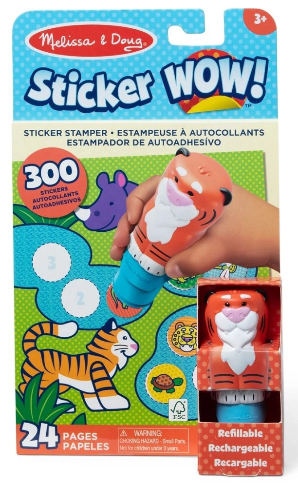 Linksmo tigriuko formos antspaudukas leidžia vaikams kurti nuostabius lipdukus vieno mygtuko paspaudimu. Tiesiog pridėkite antspauduką prie bet kurio paviršiaus ir pasirodys spalvingas džiunglių motyvų lipdukas. Rinkinyje yra net 300 lipdukų su tigru ir kitais džiunglių gyvūnais, todėl tai puikus pasirinkimas vaikams nuo 3 metų.