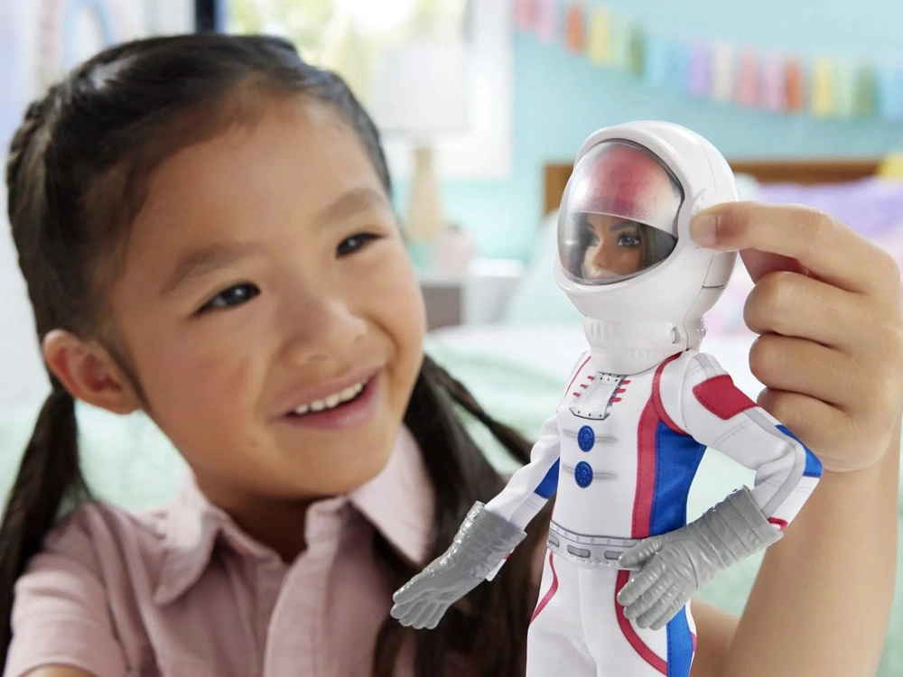 Švęskite 65 metus įkvėpimo su BARBĖS astronaute – drąsos ir svajonių, siekiančių žvaigždžių, simboliu. Realistiškas baltas skafandras su mėlynais ir raudonais akcentais, sidabrinėmis pirštinėmis ir juodais batais atrodo kaip tikra astronautų įranga. Nuimamas šalmas su skaidriu skydeliu ir artikuliuotos galūnės leidžia stilingai pozuoti ir kurti dinamiškas kosmines misijas.