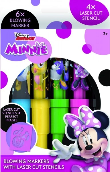 Su pučiamaisiais flomasteriais MINNIE vaikai lengvai sukurs įspūdingus piešinius pūsdami per specialų antgalį. Sodrios spalvos ir mėgstami pasakų motyvai skatina kūrybiškumą ir smagią meninę veiklą namuose ir darželyje.
