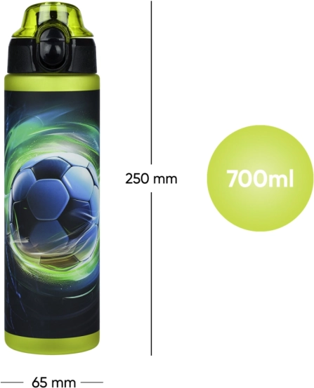 Stilinga futbolo spauda ir šoninė skalė skysčio kiekiui sekti. Idealu į mokyklą, treniruotes ir keliones.