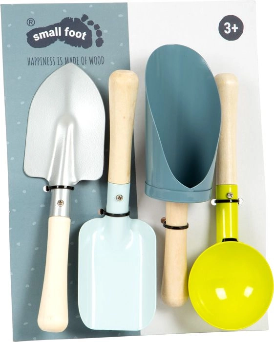 Vaikiškų kastuvėlių rinkinys Small Foot turi viską, ko reikia mažiesiems statytojams ir sodininkams: rankinį kastuvėlį, semtuvėlį su samteliu, šiukšlių semtuvėlį ir anglių semtuvėlį. Tvirtos metalinės galvutės ir glotnios medinės rankenos užtikrina ilgaamžiškumą ir patogų laikymą net ilgesnio žaidimo metu.