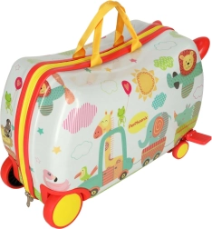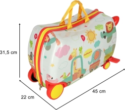 Linksmos gyvūnų temos ir ryškios spalvos skatina vaikus savarankiškai krautis daiktus ir džiaugtis kelionėmis.