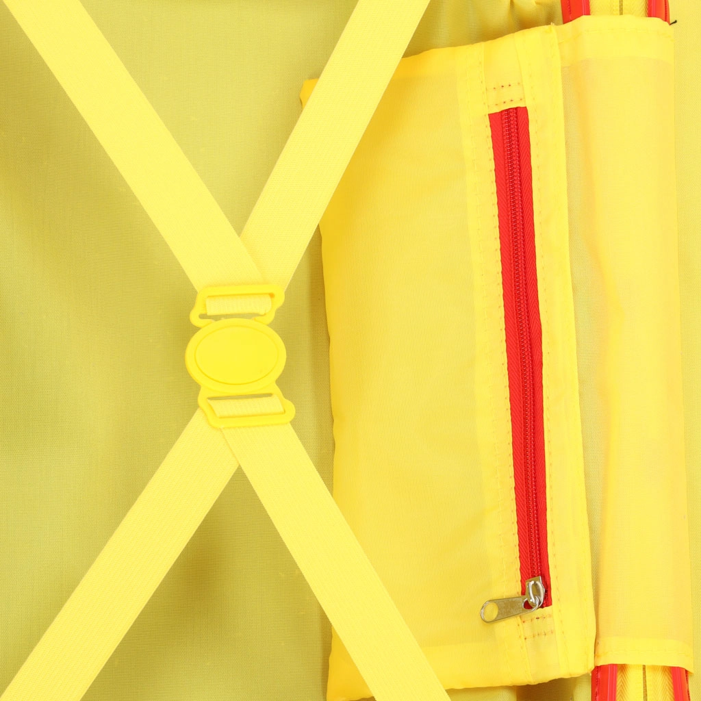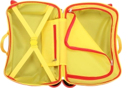 Atsparus plastikinis korpusas, apkrova iki 20 kg ir integruoti pakojai kojoms leidžia vaikui patogiai atsisėsti ir pasivažinėti – idealu oro uostų salėse ar stotyse. Ryškiai geltonas vidus suteikia žaismingumo ir geresnį matomumą sudėtiems daiktams.