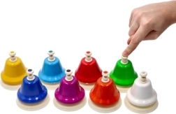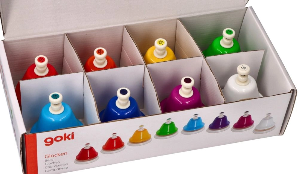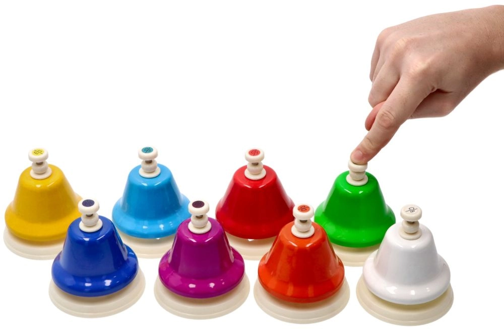Šiame rinkinyje yra 8 skirtingų spalvų varpeliai, idealiai tinkantys kurti įvairius tonus ir garsus.