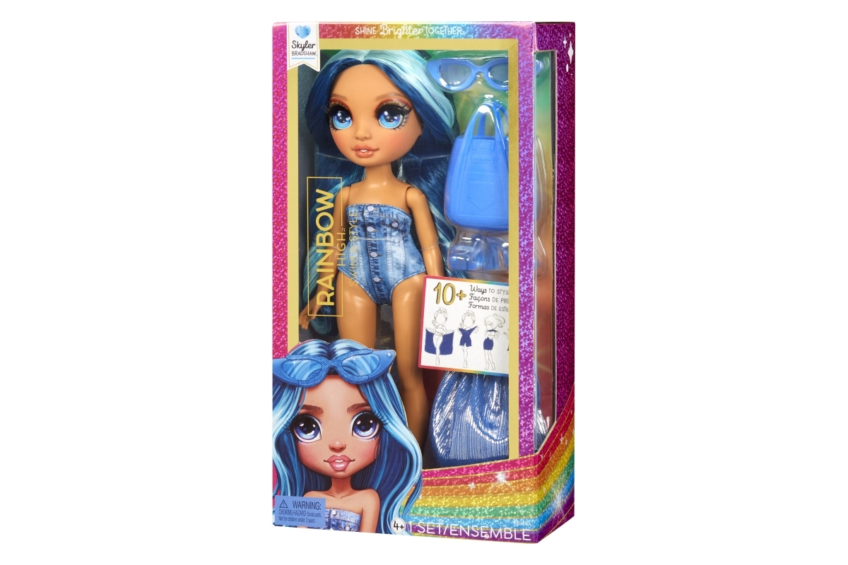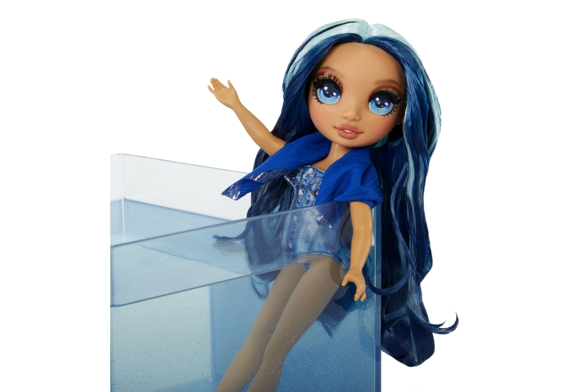 SKYLER iš kolekcijos Rainbow High Swim & Style išsiskiria ilgais mėlynais plaukais, madingu maudymosi kostiumėliu ir gausybe aksesuarų begalinėms stiliaus galimybėms. Dėl lankščių galūnių lengvai pozuoja ir yra pasirengusi bet kokiam vasaros nuotykiui.