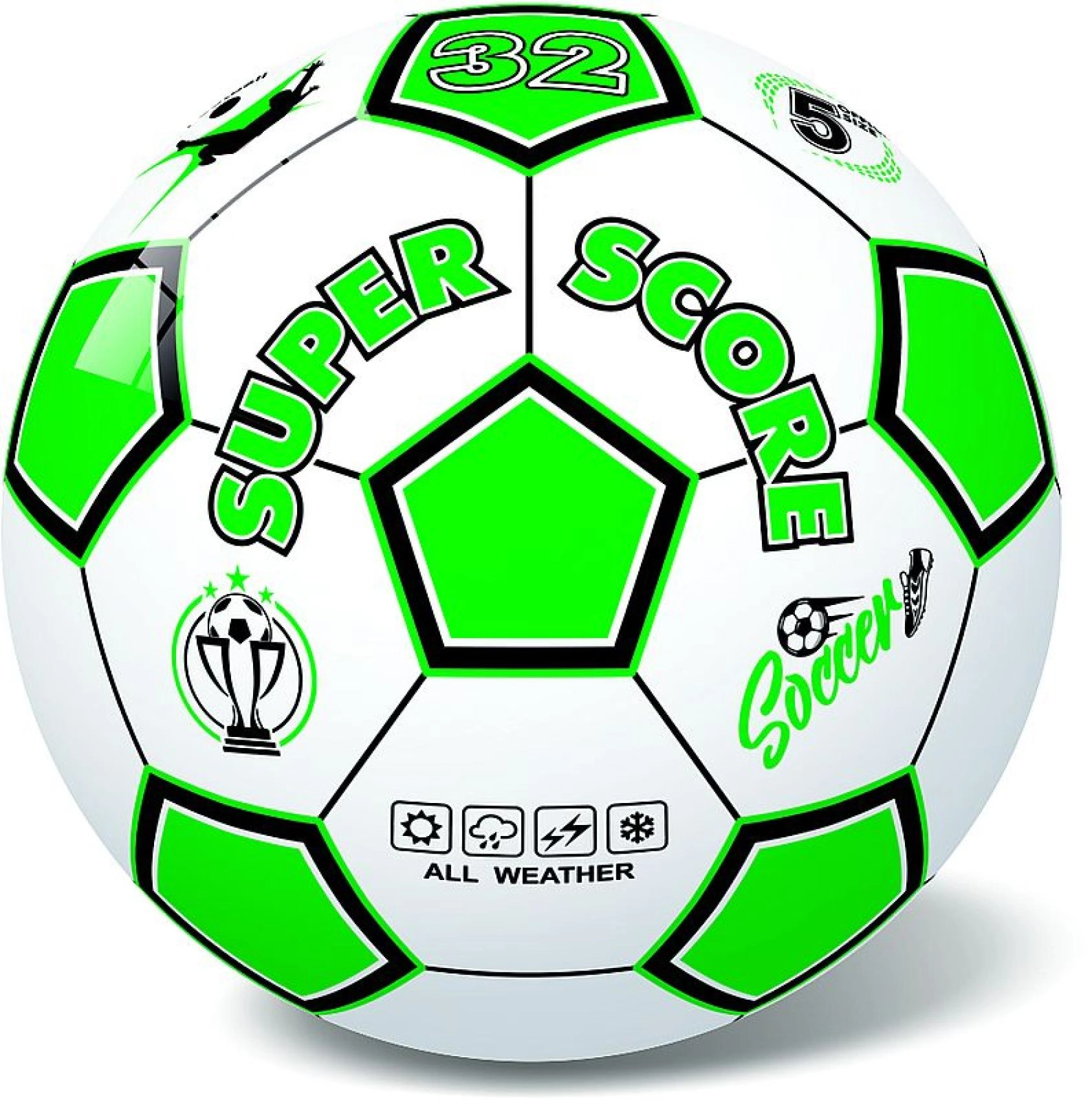 Lengvas ir patvarus futbolo kamuolys, 23 cm skersmens, skirtas žaidimams namuose, sode ar parke. Dėl universalaus all‑weather dizaino, 32 panelių konstrukcijos ir lengvo valdymo puikiai tinka vaikams ir suaugusiesiems. Tinka vaikams nuo 3 metų.