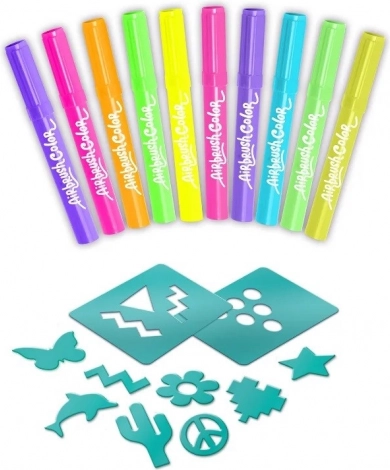 - 10 neoninių flomasterių, 20 trafaretų