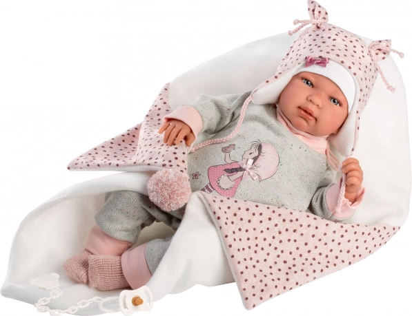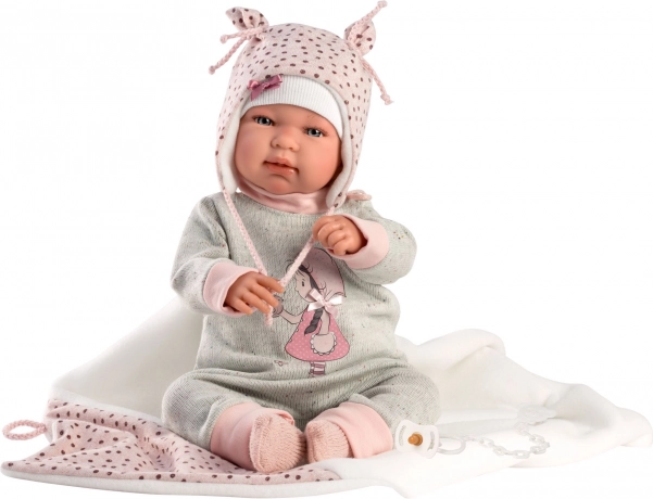 Rinkinyje yra stilinga antklodėlė su kutu surišimui, kuri užbaigia lėlytės įvaizdį ir pagyvina migdymo žaidimus.