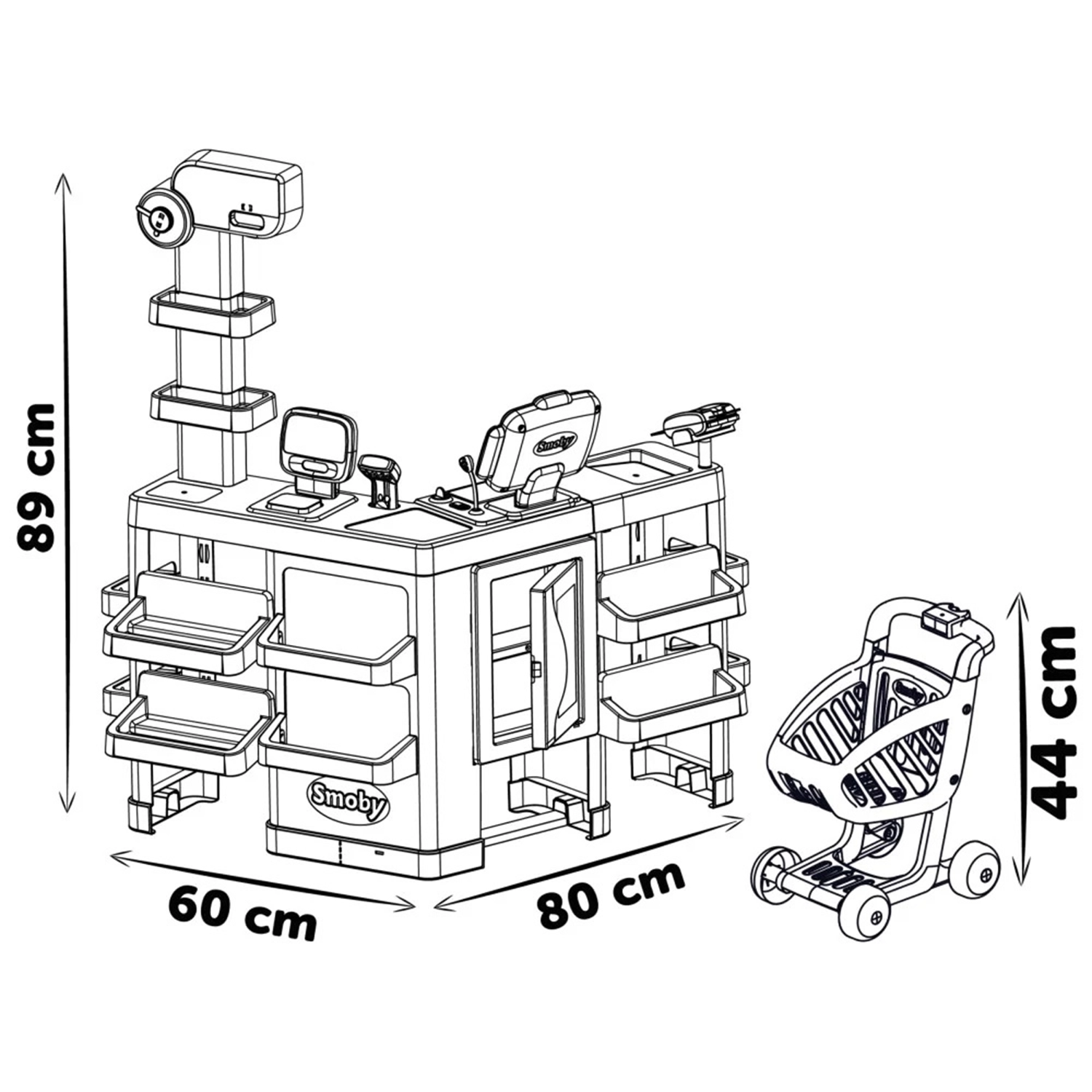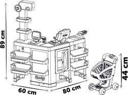 Smagus ir interaktyvus SMOBY supermarketas puikiai tinka vaikams, norintiems pasinerti į pirkimų ir pardavimų pasaulį. Šiame žaidimų rinkinyje yra viskas, ko tikėtumėtės tikroje parduotuvėje, įskaitant kasą su šviesų ir garso skeneriu, mechanines svarstykles ir kreditinių kortelių skaitytuvą. Puikus priedas – pirkinių krepšelis, palengvinantis vaikų apsipirkimo žaidimus.