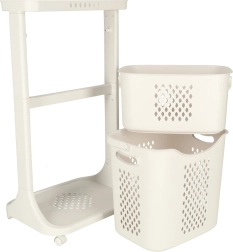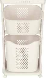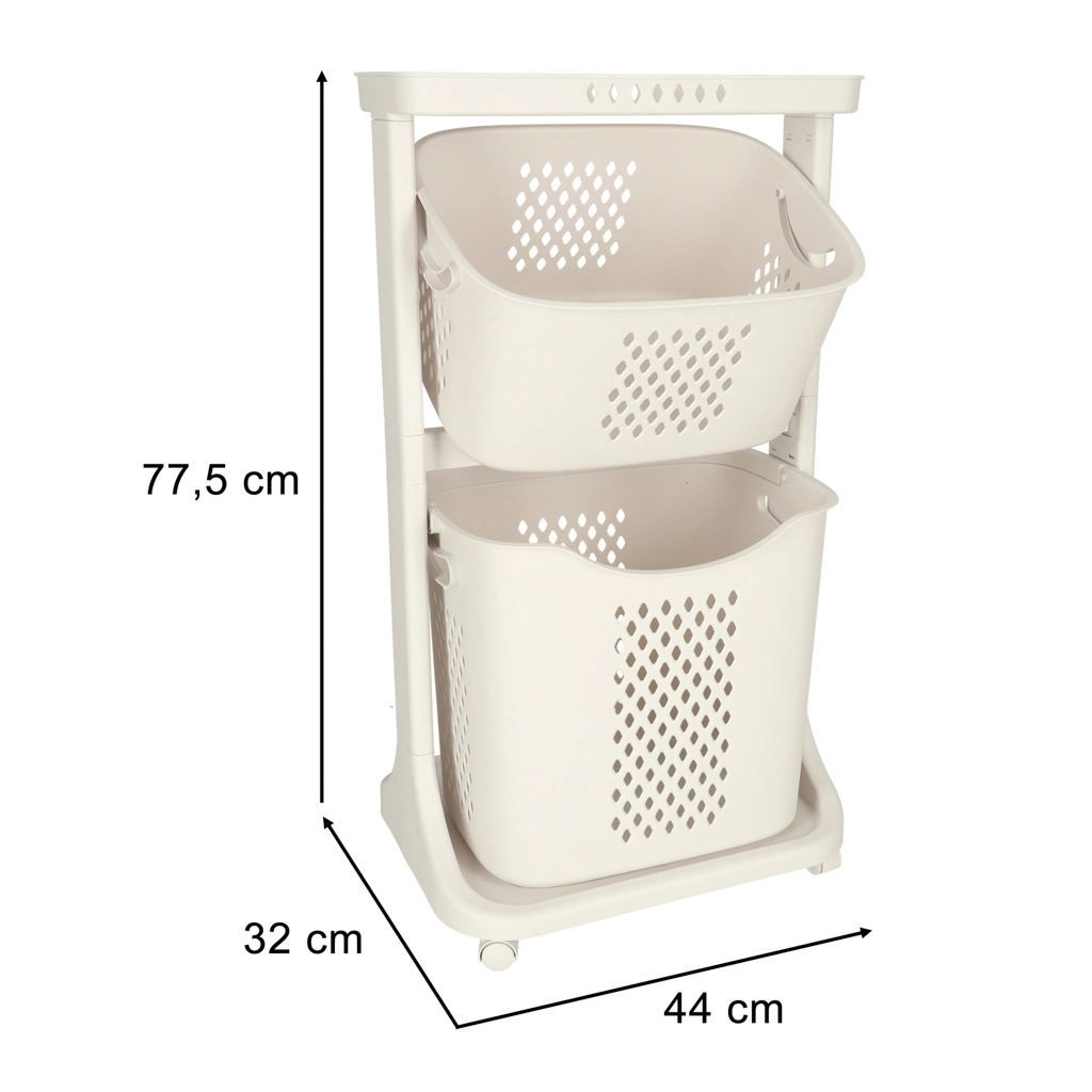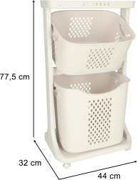 Elegantiškas ir funkcionalus sprendimas kasdieniai namų tvarkai. Du erdvūs krepšiai leidžia patogiai rūšiuoti skalbinius arba laikyti žaislus ir smulkmenas. Perforuotas raštas skatina oro cirkuliaciją, todėl turinys ilgiau išlieka gaivesnis.