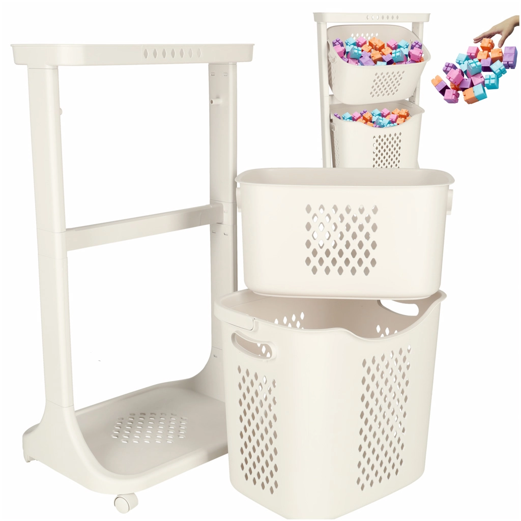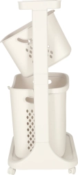 Krepšius galima lengvai išimti ir naudoti atskirai – didesnis krepšys papildomai turi praktišką nešimo rankeną. Stabili plastikinė konstrukcija su judančiais ratukais leidžia perstumti visą stovą ten, kur jo kaip tik reikia.