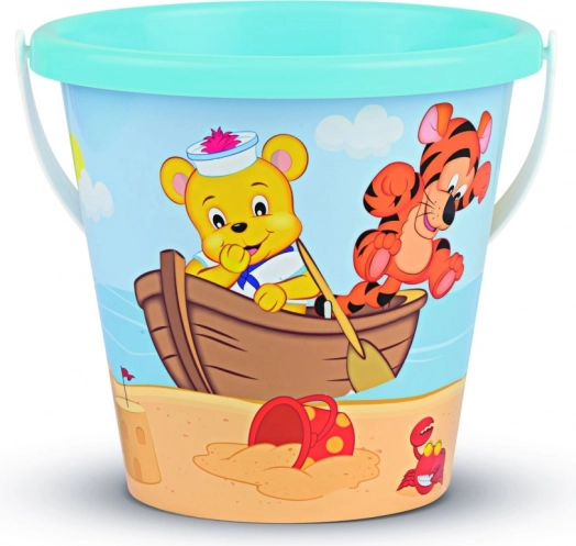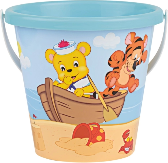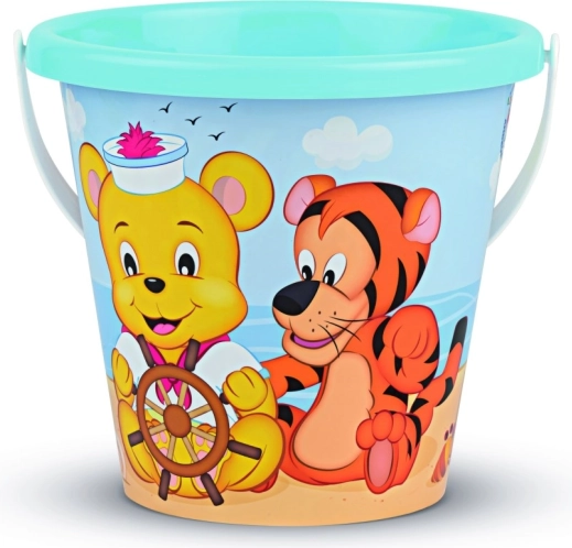 Mielas ir patvarus kibirėlis su linksmomis meškiuko ir tigriuko iliustracijomis lydės vaikus žaidžiant paplūdimyje ar smėlio dėžėje. Dėl kompaktiškų matmenų jį patogu laikyti ir nešti, o tvirta rankena užtikrina patogų šlapio smėlio ar vandens pernešimą.