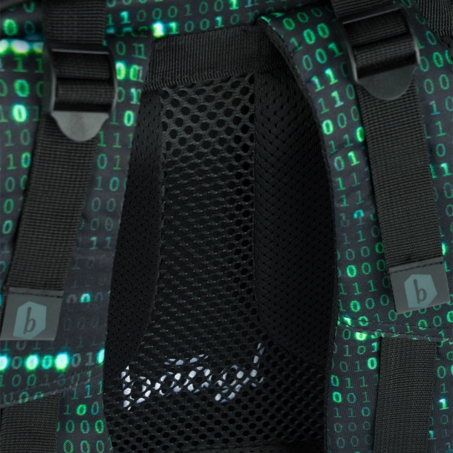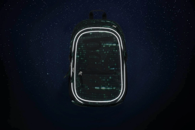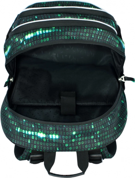 Ši kuprinė išsiskiria unikaliu dizainu su dvejetainio kodo motyvu žalia ir juoda spalvomis, kuris patrauks kiekvieno technologiomis besidominčio studento dėmesį.