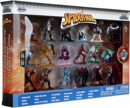Pakuotėje rasite ir ikoniškus herojus, ir garsiusius piktadarius: Spider-Man, Spider-Man 2099, Kid Arachnid, Ghost-Spider, Spider-Woman, J. Jonah Jameson, Venom, Phage, Agony, Carnage, The Lizard, Prowler, Morbius, Kraven the Hunter, Gray Goblin, Vulture, Mysterio ir Kingpin. Rinkinys – puiki dovana tiek mažiems, tiek dideliems komiksų ir filmų gerbėjams.